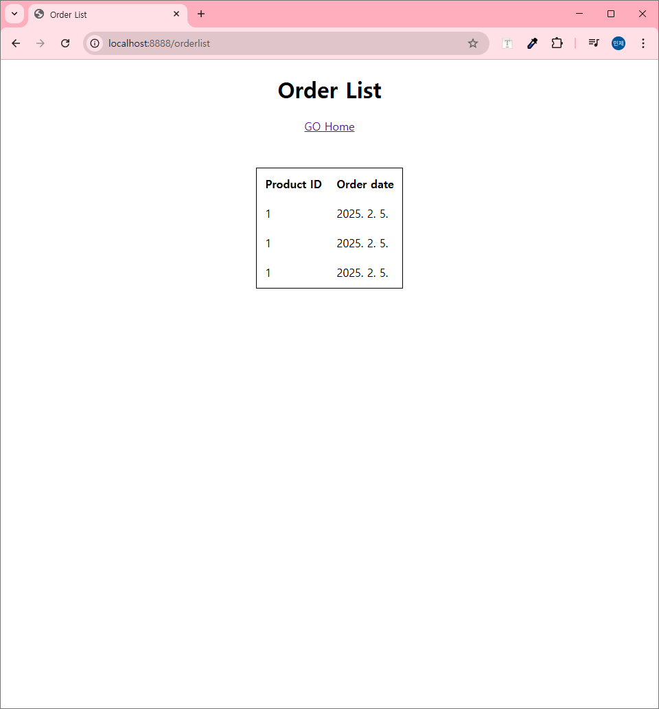 이제 /orderlist에 접속하면 orderlist.html에 해당되는 페이지가 잘 보일 것이다.