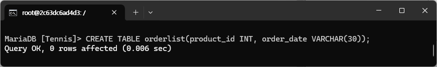 먼저 mariadb에서 orderlist 테이블을 만들어준다.
