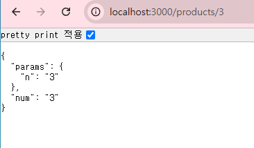 params에는 {"n": "3"}이 저장되어있고, params.n을 통해 3이라는 값을 꺼내 사용할 수 있다.