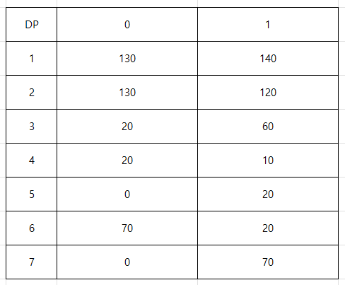 최종적으로 채워진 dp 테이블이다.