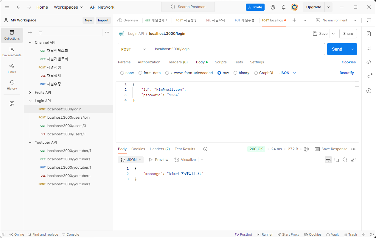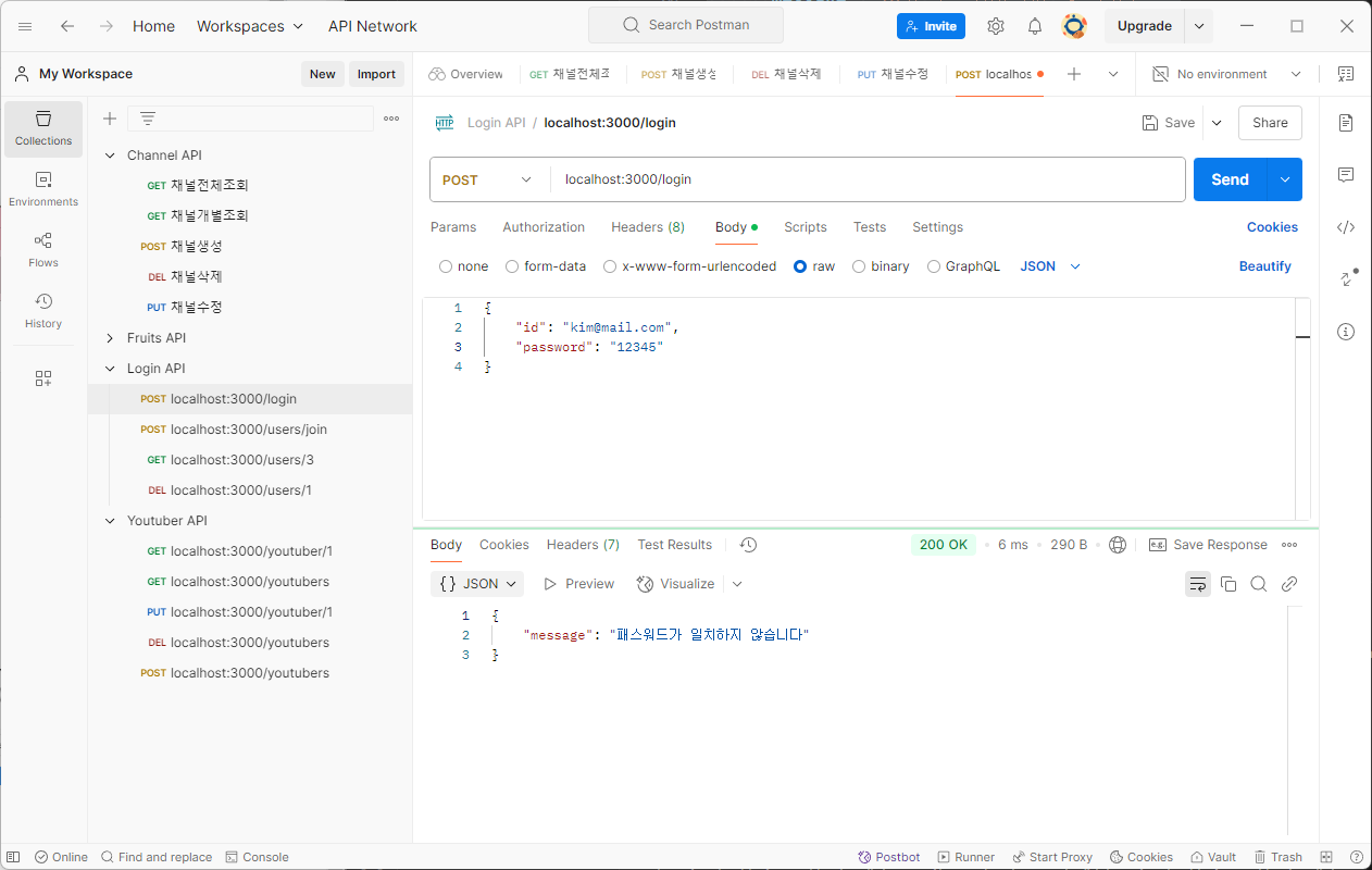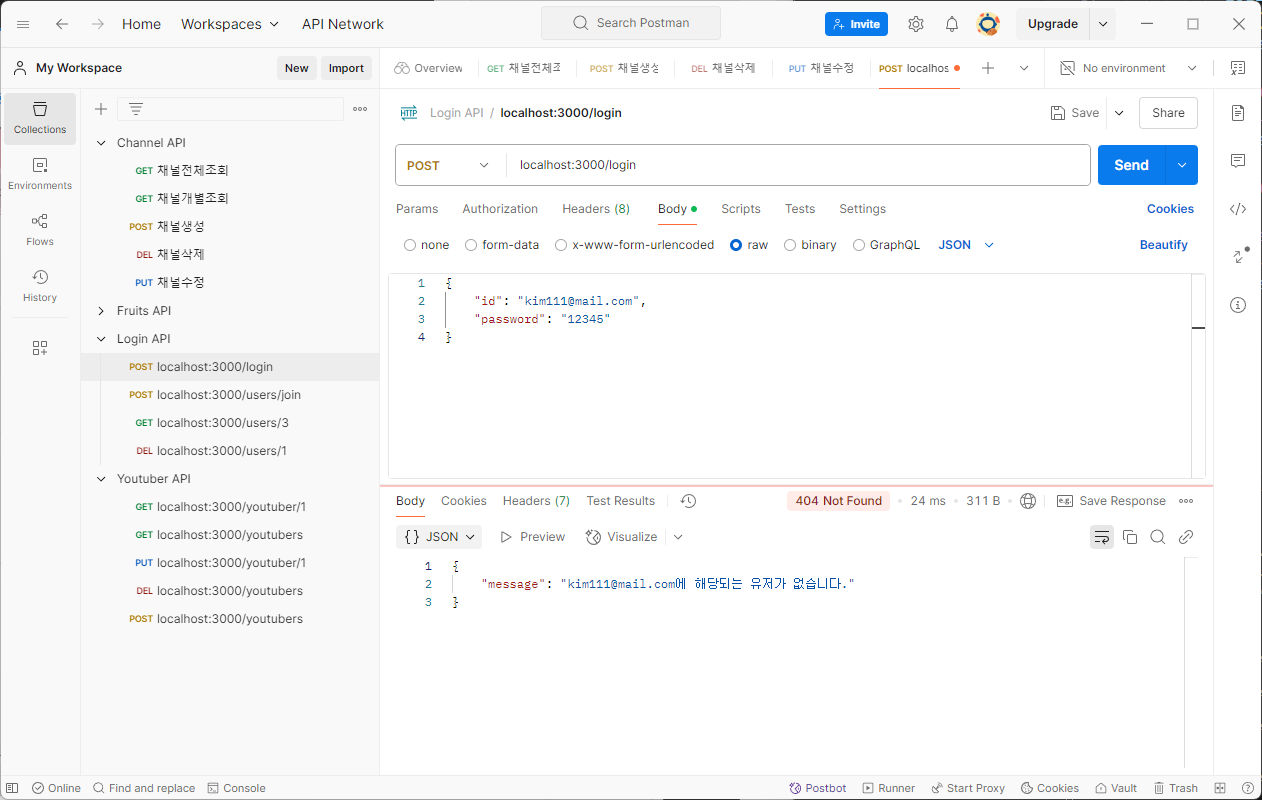 [Node.js] 유튜브 서비스 - 로그인(POST)