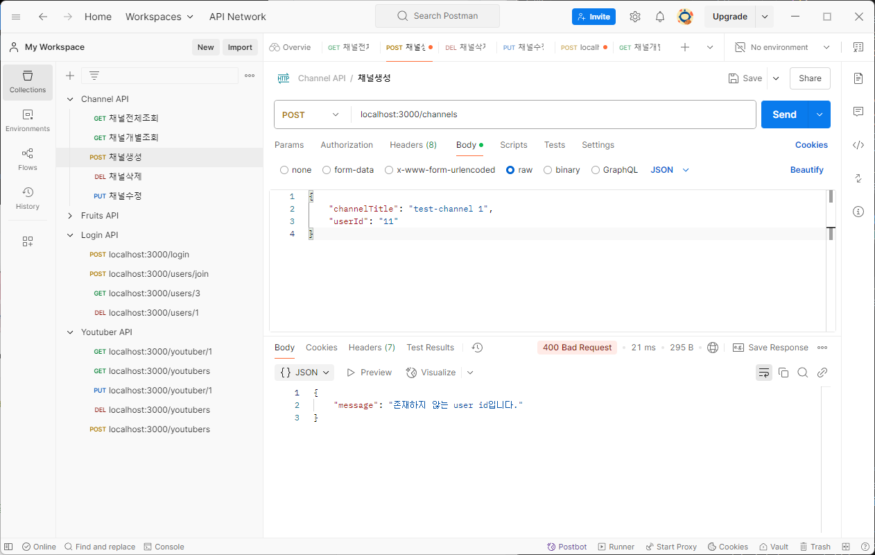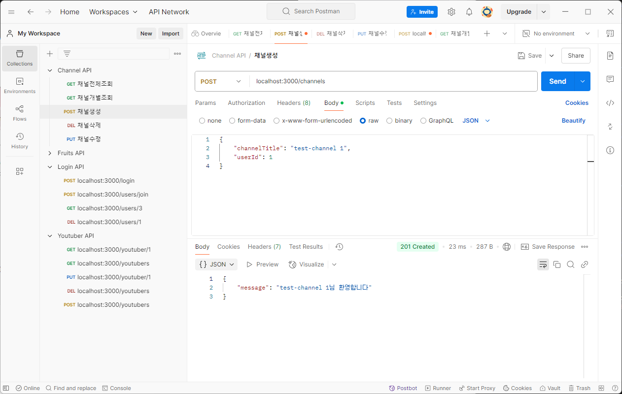 [Node.js] 유튜브 서비스 - 채널 생성, 채널 조회(POST, GET)