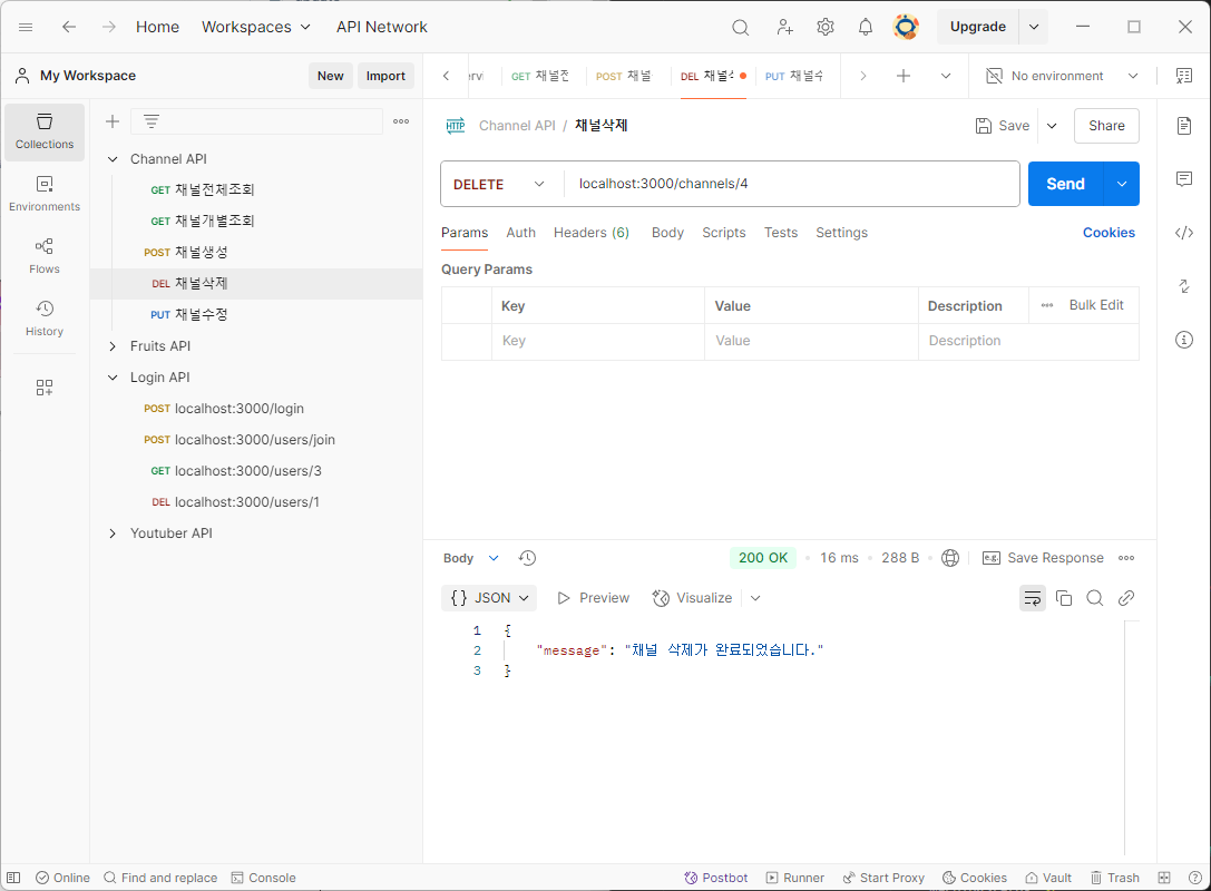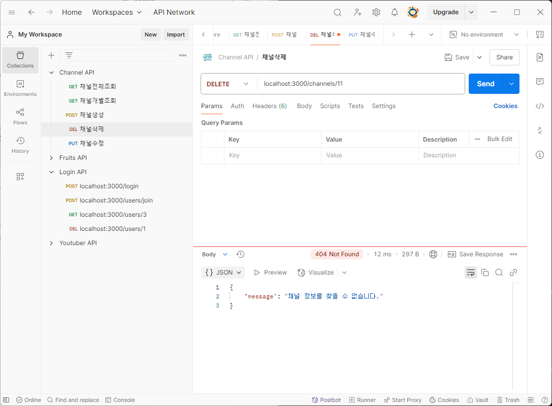 [Node.js] 유튜브 서비스 - 채널 삭제, 채널 수정(DELETE, PUT)