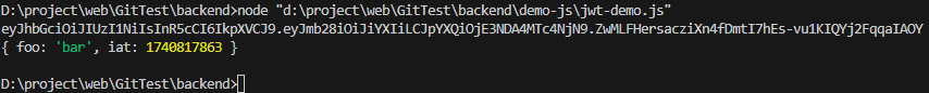 실제로 위 token을 출력해보면, eyJhbGciOiJIUzI1NiIsInR5cCI6IkpXVCJ9.eyJmb28iOiJiYXIiLCJpYXQiOjE3NDA4MTc2NDZ9.H6O79X36UBtydRa6lQ_6yJ45cJ-op5mecwAKdahT5Hg