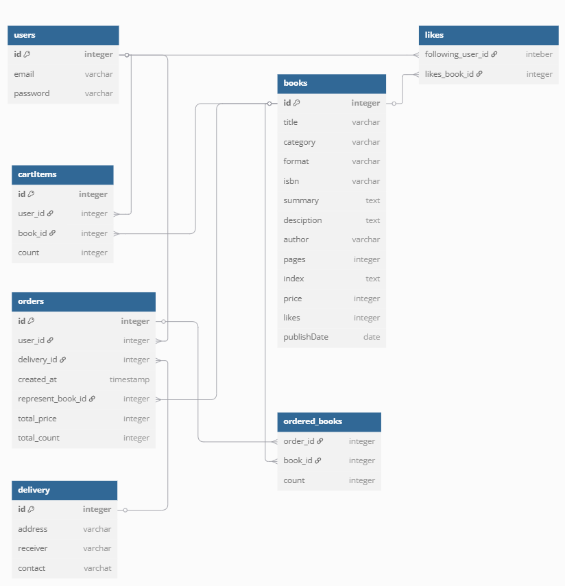 이제 지난 API 설계한 것을 모두 만족시킬 수 있도록 ERD를 작성해보자.