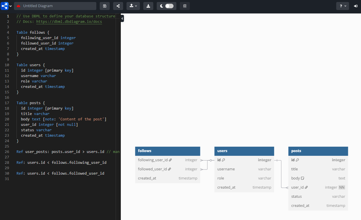 dbdiagram.io - Database Relationship Diagrams Design Tool