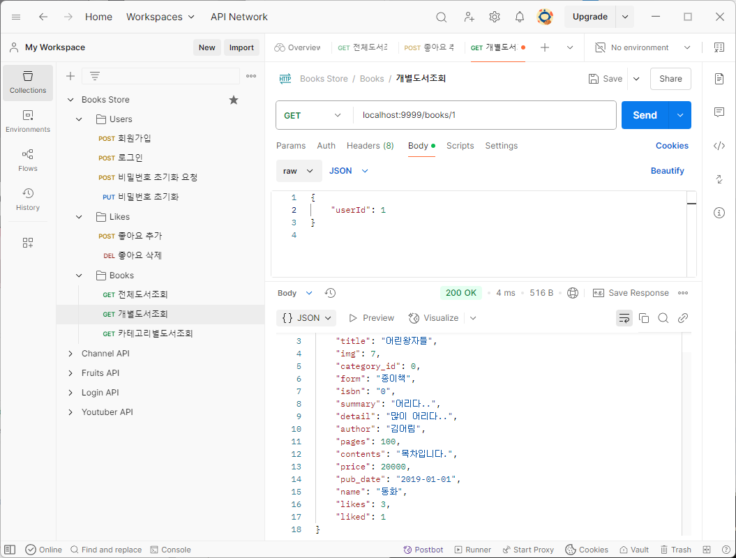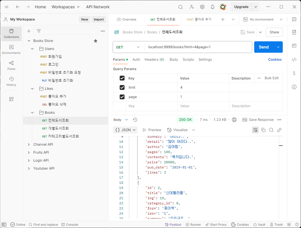 기존 도서 전체 조회 코드에서는 데이터베이스의 books 테이블 값들을 보여주었다.