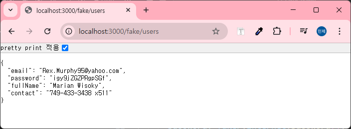 그리고 users를 출력하면 다음과 같이 랜덤 데이터가 잘 생성되는 것을 볼 수 있다.