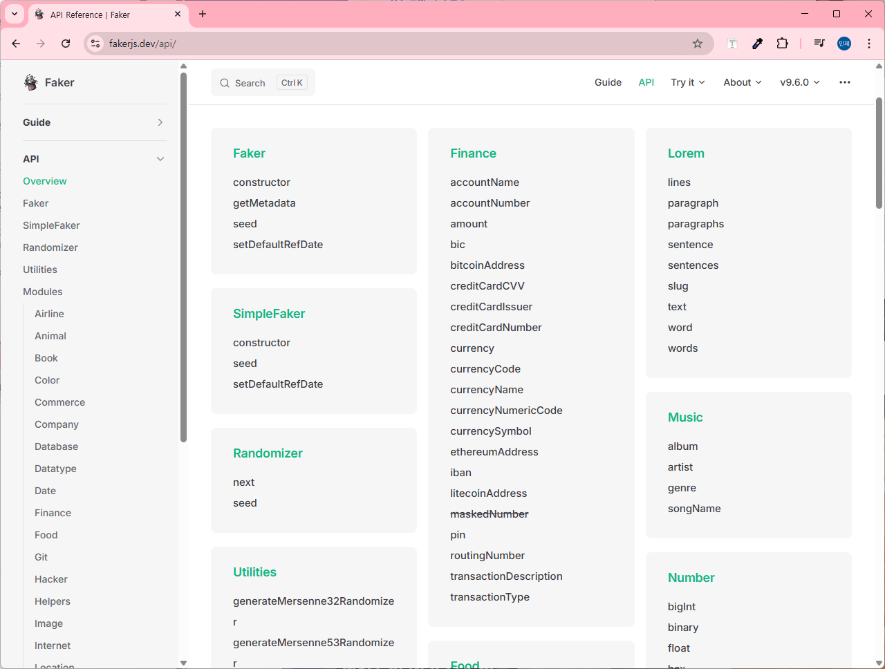 친절하게도 fakerjs는 라이브러리를 통해 편리하게 사용할 수 있도록 기능을 제공해준다.