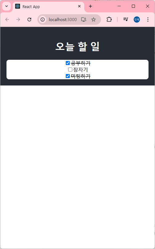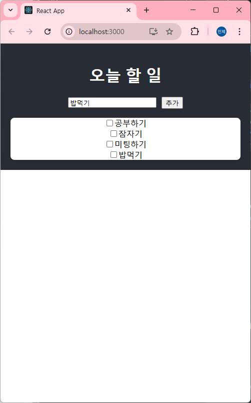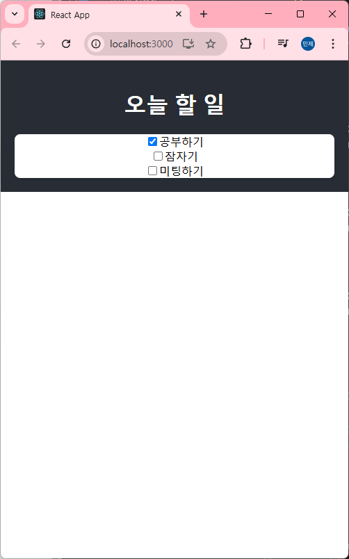 체크박스를 눌러 완료 여부를 체크할 수는 있지만, 이는 껍데기만 존재하고 실제로는 아무 일도 수행하지 않는다.