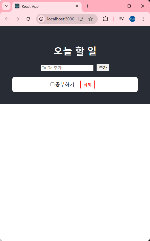 마지막으로 "추가" 버튼을 누르면 작성한 To-Do가 추가된다.