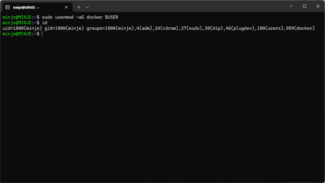 sudo usermod -aG docker $USER