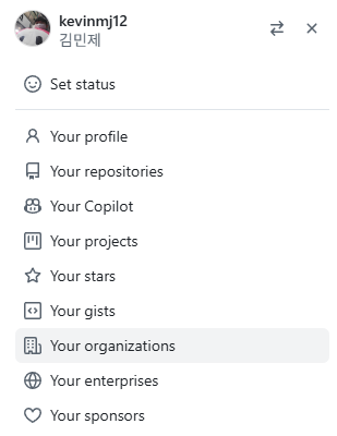 Your organizations를 누른 뒤, 우측 상단에 있는 New organization 버튼을 누른다.
