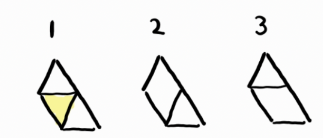 그리고 위 3가지 중 맨 오른쪽 타일이 삼각형인 것은 (1, 2) 2개, 마름모인 것은 (3) 1개이다.