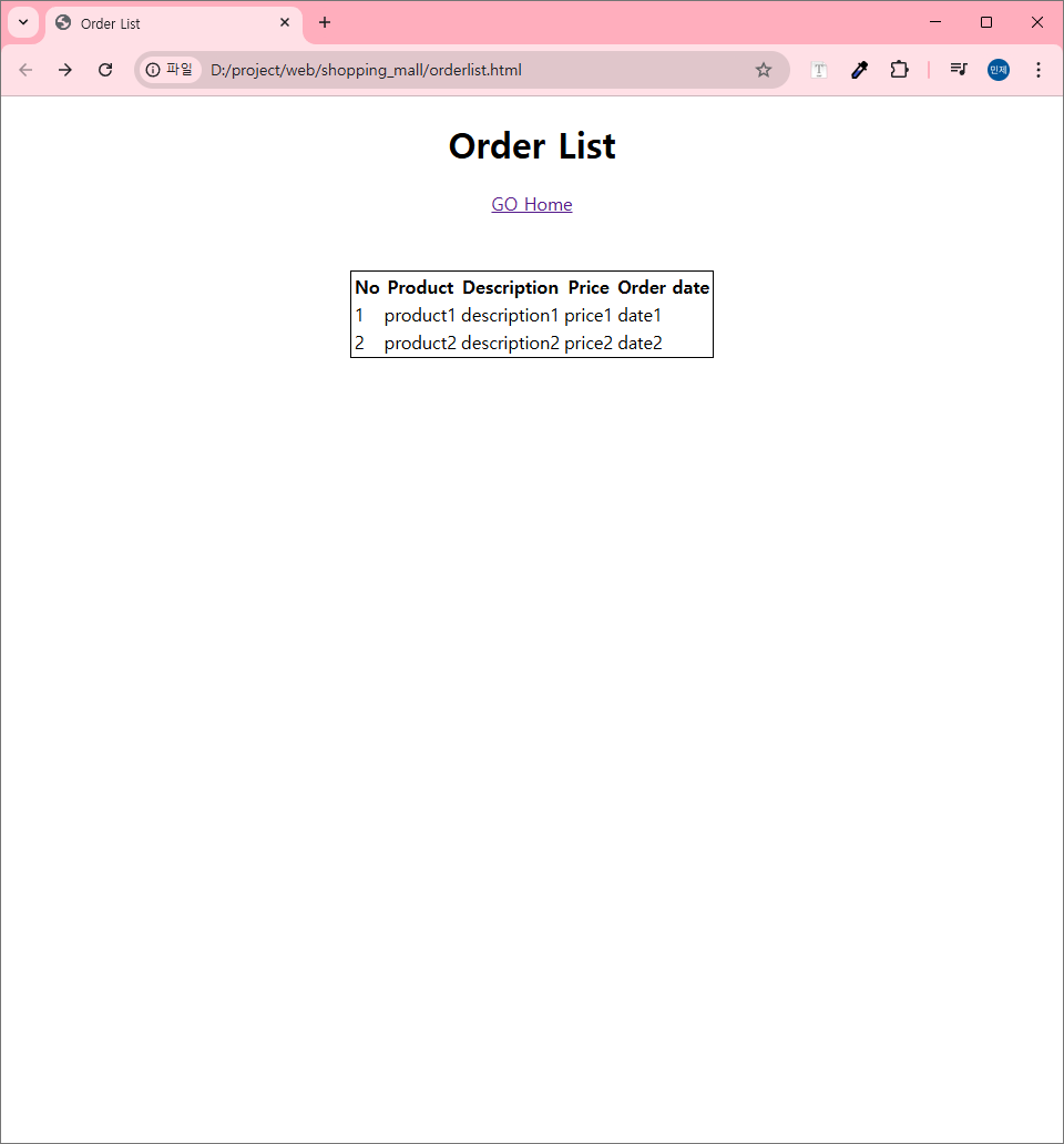 주문 목록 페이지에서는 <table> 태그를 사용하였는데, table에 대한 자세한 설명은 다음과 같다.